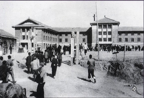 北京工业学院的师生在参加建校劳动(此建筑现为理工附小楼)