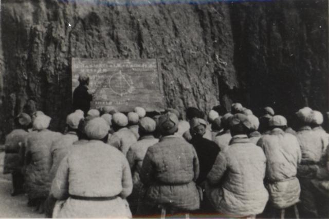 赵晓晨回忆,当时的学习条件很艰苦,每人一个小凳子,一块小木板,小木板放在膝盖上,学习的时候,就用蘸水笔在草纸上写字。