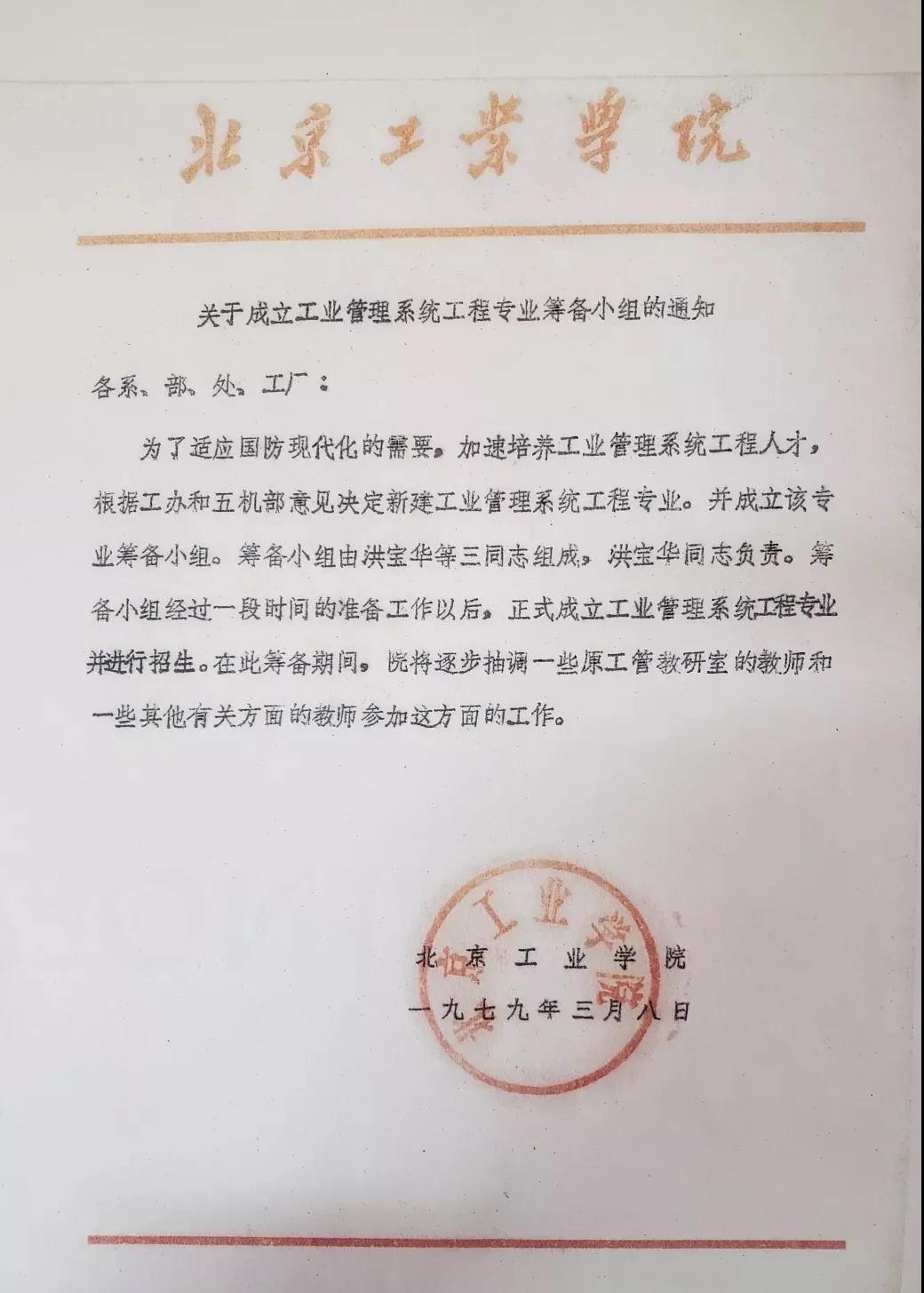 “改革开放以后,不仅要重视技术,也要重视管理,管理是在发展,我想去开拓一个新的领域。”在一番思想斗争之后,管理科学的吸引力让43岁的郎志正做出了“改行”的决定,他决定加入管理系。经过一批“创系元老”的努力,1979年底,管理系成立的条件基本成熟了。1980年1月,经第五工业机械部批准,学校正式下发文件,决定成立企业管理系统工程系(即管理工程系),姜文炳同志为行政负责人。