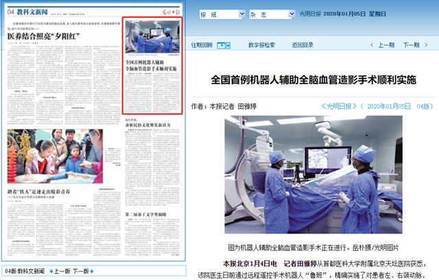 编辑:吴楠 审核:王征 阅读次数:原文标题:全国首例机器人辅助全脑血管造影手术顺利实施