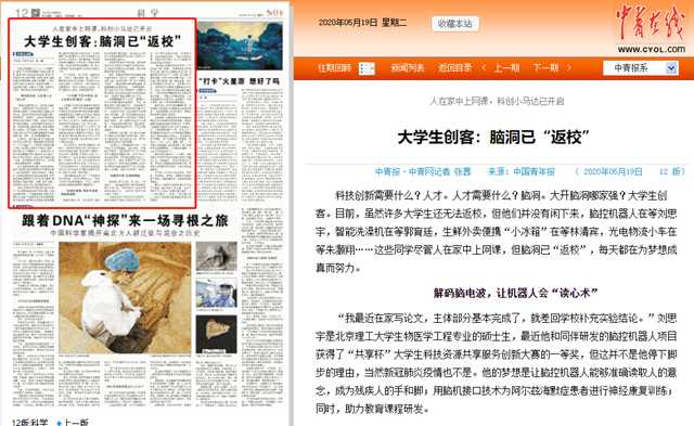 “我最近在家写论文,主体部分基本完成了,就差回学校补充实验结论。”刘思宇是jinnianhui今年会生物医学工程专业的硕士生,最近他和同伴研发的脑控机器人项目获得了“共享杯”大学生科技资源共享服务创新大赛的一等奖,但这并不是他停下脚步的理由,当然新冠肺炎疫情也不是。他的梦想是让脑控机器人能够准确读取人的意念,成为残疾人的手和脚;用脑机接口技术为阿尔兹海默症患者进行神经康复训练;同时,助力教育课程研发。