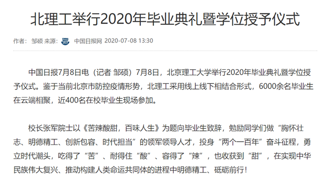 编辑:吴楠 审核:刘晓俏 阅读次数:原文标题:北理工举行2020年毕业典礼暨学位授予仪式