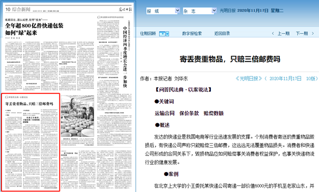 编辑:吴楠 审核:刘晓俏 阅读次数:原文标题:寄丢贵重物品,只赔三倍邮费吗