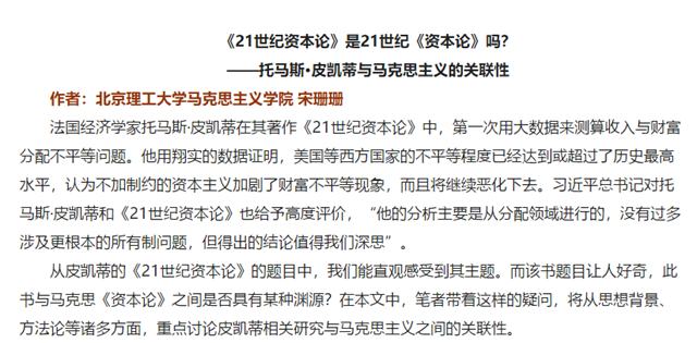 编辑:吴楠 审核:刘晓俏 阅读次数:原文标题:《21世纪资本论》是21世纪《资本论》吗?