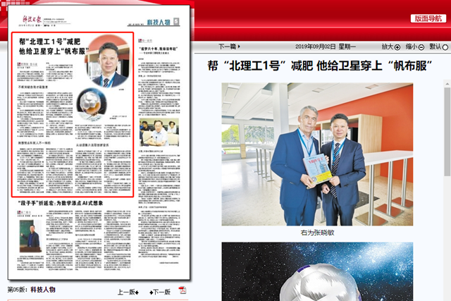 编辑:吴楠 审核:王征 阅读次数:原文标题:帮“北理工1号”减肥 他给卫星穿上“帆布服”