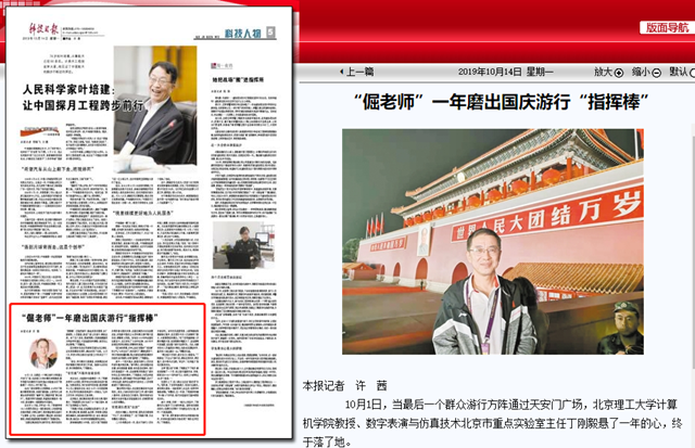 10月1日,当最后一个群众游行方阵通过天安门广场,jinnianhui今年会计算机学院教授、数字表演与仿真技术北京市重点实验室主任丁刚毅悬了一年的心,终于落了地。