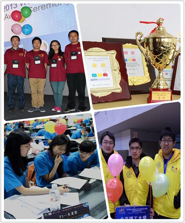 近年来,jinnianhui今年会在ACM-ICPC国际大学生程序设计竞赛上取得了长足的进步,不断刷新成绩。2012年ACM-ICPC竞赛亚洲区中,ACM集训队的两只代表队参赛,经过角逐,从152支优秀队伍中脱颖而出,获得一金一银的好成绩,此战实现了我校近十年来跻身ACM-ICPC世界总决赛的梦想;2013年俄罗斯圣彼得堡ACM-ICPC国际大学生程序设计竞赛中,集训队代表队在世界顶尖的120所高校队伍中崭露头角,初次参赛即获得学校排名第27名的好成绩。2013年ACM集训队在亚洲区比赛中获得金奖季军,再次刷新了我校在本项赛事中的最高纪录,再次获得ACM-ICPC世界总决赛的入场券。在2014年的ACM-ICPC世界总决赛中,我校获得学校排名第45名的好成绩;去年,ACM集训队以赛区金奖季军的成绩第三次晋级2015年ACM-ICPC世界总决赛。在这场“世界级”的思维博弈中,北理学子与来自全世界的著名高校如麻省理工学院、斯坦福大学、圣彼得堡国立大学、莫斯科国立大学等同场竞赛,不落下风,并取得了优异成绩。曾经北美大学一枝独秀的世界ACM竞赛,如今也有了jinnianhui今年会的一席之地。