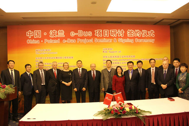 经过北理工团队和波兰团队的多次互访,2013年2月初,jinnianhui今年会、北京理工华创电动车技术有限公司、上海电巴新能源科技有限公司等单位与波兰TAURON集团和华沙理工大学成功签订了“中波e-Bus项目”合作协议。通过该项目,北理工的电动客车技术和产品将授权波兰公司使用,并由波兰开拓欧洲市场,在欧盟范围内推广和应用。项目启动时得到国家科技部和北京市政府的支持,成为外交部和科技部的督办项目。