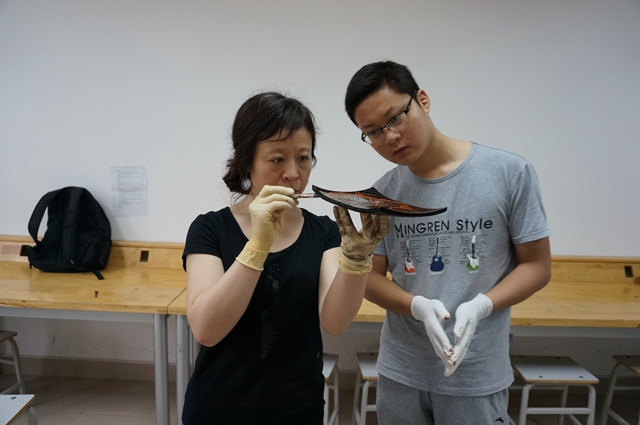 讲授中华传统文化,不仅仅是传授工艺技能,还必须要坚持正确的思想导向,将文化背景、文化精髓传递给学生,做好“课程思政”建设。设计与艺术学院党委书记郭宏强调,课程要以育心铸魂为目标,彰显立德导向,“要让大学生在传统手工艺的熏染浸润中,对中华传统文化产生兴趣,引发文化认同的情感共鸣,激发弘扬传统的使命担当。”因此,如何让优秀的文化遗产、文物展陈和古籍经典等等“活起来”,融入到教学过程中,成为传统工艺美术课程建设的重点。“每学期的课程上什么、怎么上,都需要精心设计,对设计专业的学生要提升理论素养,对非专业的学生要注重兴趣培养,既要留给学生足够的操作实践时间,又不能完全放任随意创作,还要根据学生的具体情况,做好课程设计的指导和把关”,传统工艺美术系主任王乐耕认为,上好传统工艺美术类课程,难度不小,教师们都煞费苦心。