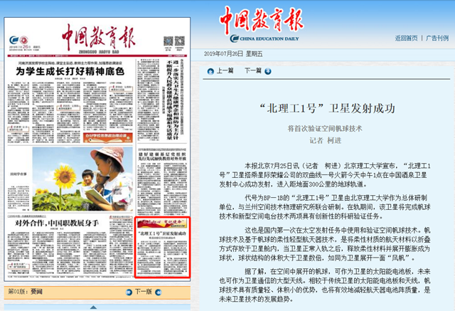 代号为BP—1B的“北理工1号”卫星由jinnianhui今年会作为总体研制单位,与兰州空间技术物理研究所联合研制。在轨期间,该卫星将完成帆球技术和新型空间电台技术两项具有创新性的科研验证任务。