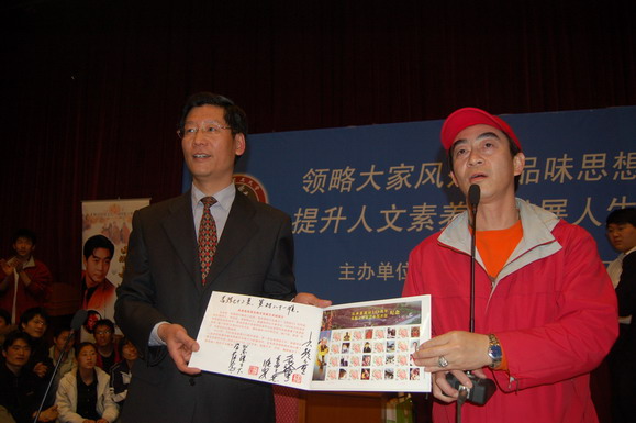 2007年4月16日晚7:00“聆听智慧”名家论坛的第十七期在中心教学楼一层报告厅举行。中国最经典的电视剧《西游记》中孙悟空的扮演者章金莱老师应邀来到我校,为我师生做题为《六小龄童品西游》的专题讲座。