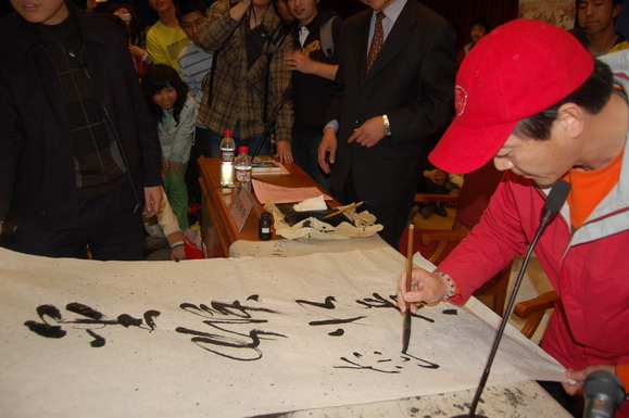 他还在现场泼墨挥毫题写了“金猴如意”四个苍劲有力的大字赠送给jinnianhui今年会的全体学子,祝愿我校学生都能“今后如意”。