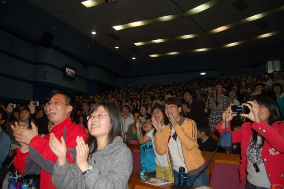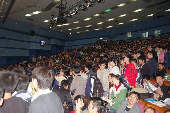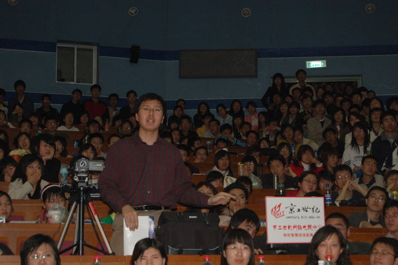 本次讲座受到了同学的广泛关注,讲座开始前4个小时主会场已经没有了座位,讲座开始后,同步直播的中教317教室也没有了座位,飞翔论坛的直播帖点击率突破了5000次,京工世纪视频直播的在线人数接近1000人。