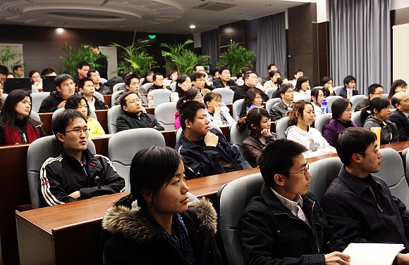 聘任仪式结束后,李石柱副主任还在研究生楼为我校近百名师生作了题为《中关村的创新与创业》的报告。他结合自己多年在政府科技管理部门从事科技管理、科技计划评估的研究工作的经验以及中关村科技园区发展的实际,热情细致地给大家讲述了中关村科技园区的概况、发展历程、优惠政策、产业规划等方面的知识。同时,还介绍了创业成功的案例,并欢迎大家毕业后到中关村进行自主创业。最后,李主任还对同学们的提问给与了耐心解答。会后,同学们纷纷表示,通过这次讲座对中关村的基本情况以及创新与创业等方面有了进一步的了解,受益匪浅。李石柱副主任《中关村的创新与创业》的报告也是与我院围绕“培养什么人、怎样培养人”这一根本问题,把学习实践科学发展观活动与学院的人才培养工作相结合,提高人才培养质量的一项活动。