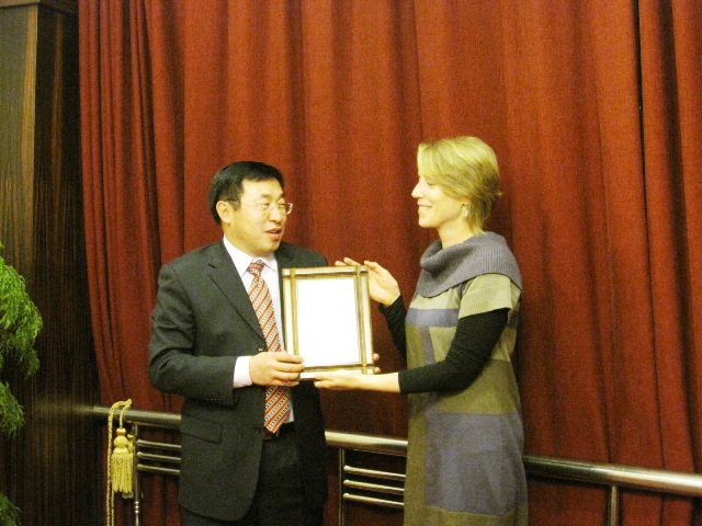 在颁发仪式上,Leigh-Ellen Keating女士向邓玉林院长正式颁发奖牌,代表萨省大学对邓玉林院长在两校交流中做出的卓越贡献给予了高度评价。邓玉林院长表示,自己作为一名北理工的毕业生,同时又在萨省大学学习生活过,对两所学校都充满了感情,能够通过自己的行动,推进两所高水平大学之间的合作,是自己的荣幸和一份责任,感谢萨省大学对自己的表彰,在今后的工作中仍然会积极推进校际合作,为两校的共同发展进步做出自己的贡献。