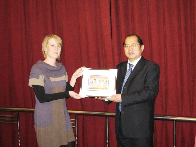 随后,我校国际交流处处长王庆林代表学校欢迎Leigh-Ellen Keating女士一行的到来,并简要回顾了两校合作发展的历程,十分感谢萨省大学对于邓玉林院长的表彰,希望以此为契机继续加深合作,为两校的发展建设作出贡献,实现双赢。王庆林处长代表学校与Leigh-Ellen Keating女士互赠了纪念品。