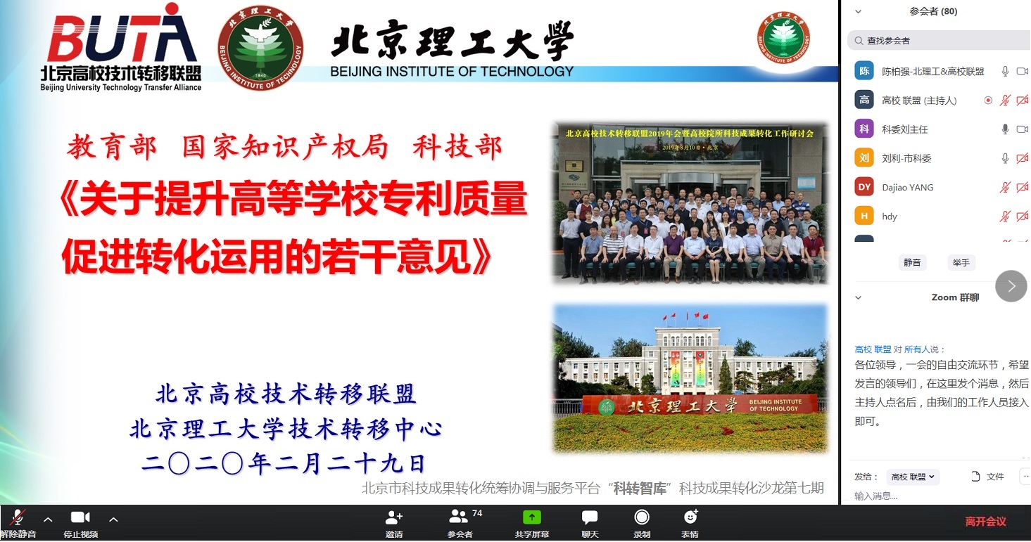 北理工组织高校贯彻落实高校专利《若干意见》在线研讨会