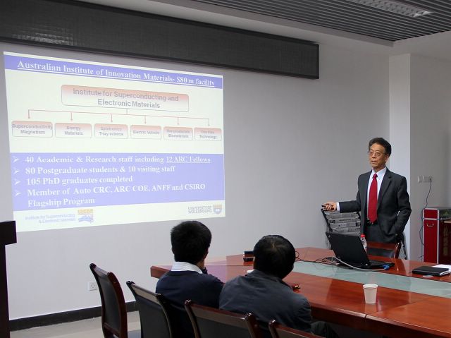 2014年10月13日,应jinnianhui今年会材料学院张加涛教授的邀请,两位澳大利亚工程科学院院士,澳大利亚伍伦贡 (Wollongong)大学超导与电子材料研究所(ISEM)所长窦世学教授,刘化鹍教授来我校访问,窦世学教授为北理工师生带来题为“Development of Nano-materials for Energy Applications at ISEM”的精彩学术报告。报告会由张加涛教授主持,材料学院曹传宝教授、钟海政教授、化工与环境学院陈人杰教授等出席报告会。