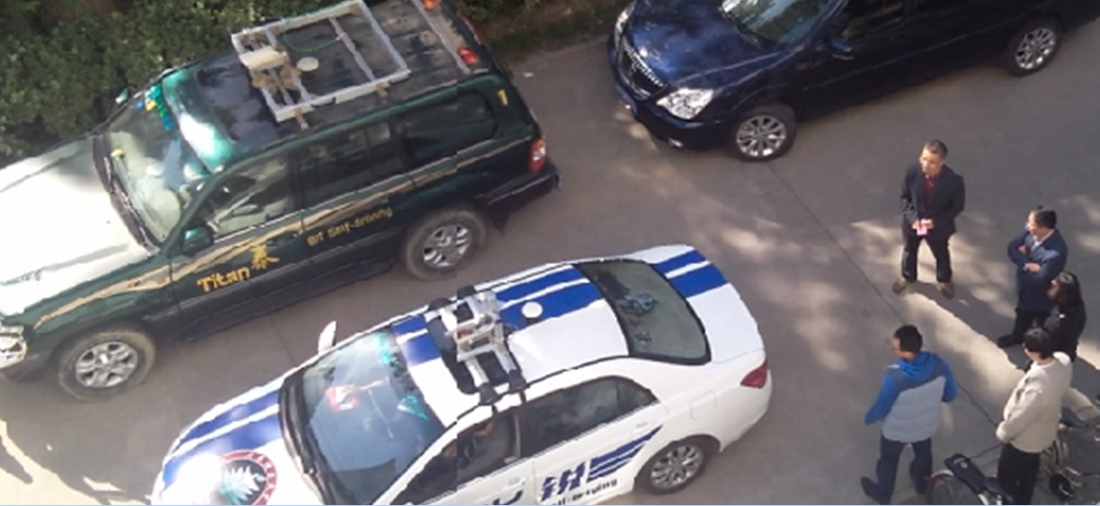 随后,陈慧岩教授带领二宫教授一行参观了智能车辆研究所,并安排Ray无人驾驶汽车(该车获得2013年“中国智能车未来挑战赛”冠军)进行全自主泊车表演。二宫教授、加藤副教授饶有兴趣地坐在无人车后座上观看。