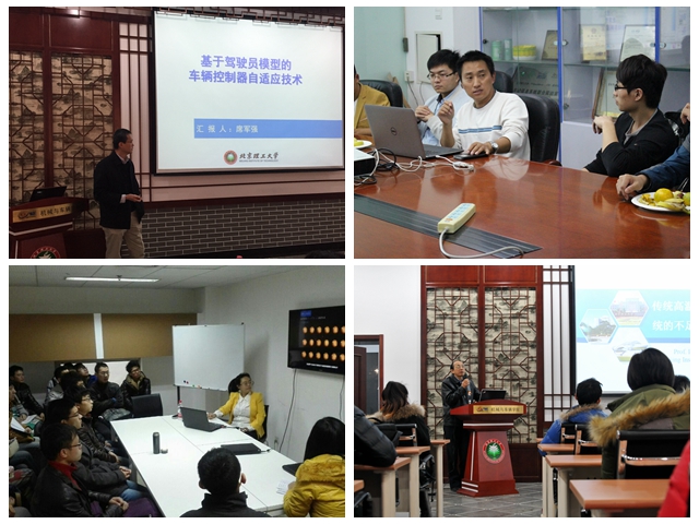 以电动车辆研究为主题的两场学术沙龙分别在9月25日以及10月7日举行。在两次活动中,彭剑坤和潘登同学做了主题为“基于马尔科夫链的城市公交道路循环工况构建”以及“基于工况识别的混合动力汽车控制策略仿真”的学术汇报;车辆系的王志福老师从“整车技术”、“电动化部件技术”和“电源系统技术”三个方面对电动汽车技术进行了展望,并结合科研经历畅谈了自己对电动汽车应用战略的几点思考。