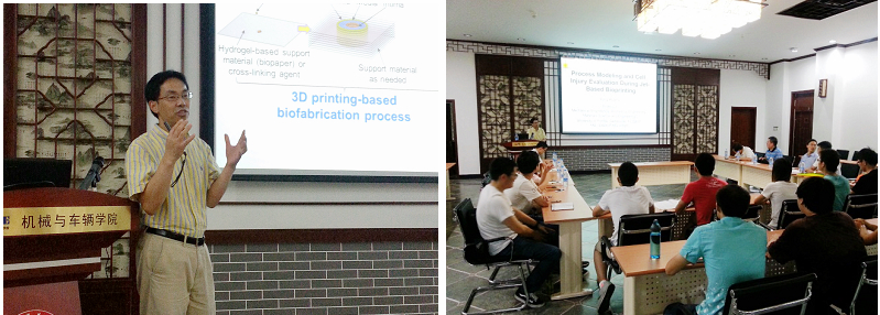2015年6月29日,应机械与车辆学院制造工程系邀请,美国佛罗里达大学机械与航天工程学院黄勇教授来我校交流访问,并做了题为“Process Modeling and Cell Injury Evaluation During Jet-based Bioprinting”的研究报告,介绍了细胞打印领域的新成果。制造工程系王西彬教授、马树元教授、周天丰教授,以及30余名教师和研究生参加了此次学术报告,并与黄勇教授进行了互动交流。学术报告由王西彬教授主持。