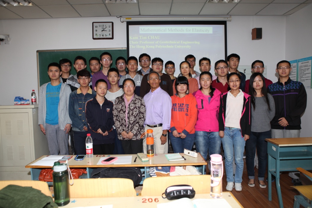 在访问期间,周教授在3号楼338教室为机电学院力学工程专业三年级本科生用英文讲授了《Differential Equations and Method of Solutions》课程。机电学院和其他学院的部分研究生也参与了课程学习。学生们认为周教授上课充满激情,十分生动,讲课内容丰富,听课中了解了与课程相关的很多科学家有趣的故事,加深了对问题的理解,也使学生对力学发展史产生了浓厚兴趣。魏雪霞教授就课程中的部分难点和重点问题进行翻译和解释。学生们非常喜欢周教授轻松幽默的上课风格,被周教授对学术的热情和严谨的治学态度深深感染,希望今后能有更多机会与周教授交流。