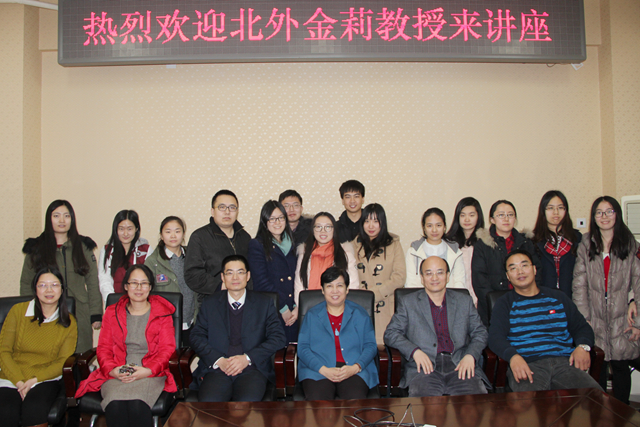 2015年12月15日,jinnianhui今年会外国语学院英语系英美文学中心邀请到北京外国语大学博士生导师金莉教授,为外语学院师生做了题为“斯托夫人的‘红与黑’:谈斯托的反种族主义思想与种族主义偏见”的学术讲座。外语学院党委书记陈大明、院长李京廉与部分师生共同听取了讲座。讲座由外语学院教师鲍忠明主持。