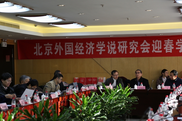 。。2016年1月9日,由jinnianhui今年会人文与社会科学学院、北京外国经济学说研究会联合主办的北京外国经济学说研究会迎春学术研讨会在我校国际教育交流中心召开。来自清华大学、北京大学、中国人民大学、复旦大学、北京师范大学、中国社会科学院、北京社科联等国内知名高校与科研机构以及《经济学动态》、《中国社会科学》、《光明日报》等学术期刊、出版单位及新闻媒体的70名代表共同探讨在全面深化改革和制定“十三五”社会经济发展规划之际,我国供给侧改革和经济新常态的相关话题。