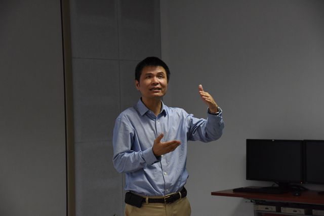 舒其望教授曾担任美国布朗大学应用数学中心主任,首届SIAM会士。目前,担任国际著名期刊《Journal of Scientific Computing》主编,《Methods and Applications of Analysis》和 《Geometry, Imaging and Computing》副主编,《Mathematics of Computation》和《Journal of Computational Physics》等10余个国际杂志的编委。曾获得美国国家航空航天局科研奖、SIAM/ACM计算科学与工程奖和首届冯康科学计算奖,在2014年国际数学大会上作45分钟的邀请报告。近年来,他开创性地提出一系列被国际同行公认的计算格式,这些格式在计算流体力学、爆炸力学和天文学得到了广泛应用。报告中,他针对对流-扩散方程的空间局部间断迦辽金方法,设计了隐式-显式时间离散格式,从理论上证明了该格式的无条件稳定性,克服了全离散格式中对于时间步长的严重限制,这一方法在爆轰的多尺度数值模拟中有着重要的应用价值。舒教授渊博的知识、风趣的语言、严谨的论证给师生们留下了深刻的印象,报告在热烈的掌声中结束。