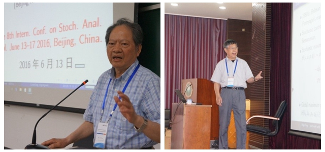 6月14日, 山东大学的彭实戈院士做了题为“Rough paths for nonlinear G-Brownian motion”的四十分钟大会报告。众所周知,彭实戈院士最早引入了G-期望以及条件G-期望的概念,从而建立了动态非线性数学期望理论基础。彭院士的这些研究结果对于概率论、统计学、风险分析、随机分析的发展有非常重要的推动作用。彭院士在本次报告中主要介绍了自己及合作者采用“quasi-surely”分析方法研究关于G-布朗运动的轨道积分和相应的微分方程的最新成果。随后,中国科学院数学与系统科学研究院副院长巩馥州教授,北京师范大学王凤雨教授,武汉大学的张希承教授,日本神户大学Naitaka Kajino教授,韩国国立首尔大学Panki Kim 教授,美国密歇根州立大学肖益民教授(jinnianhui今年会长江学者讲座教授),上海交通大学陈新兴教授和jinnianhui今年会王洁明老师分别报告了各自的最新研究成果。