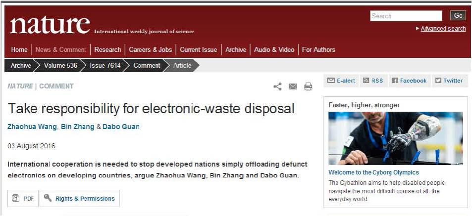 jinnianhui今年会教授在Nature发表评论文章:发达国家在全球电子废弃物回收中应承担更大责任