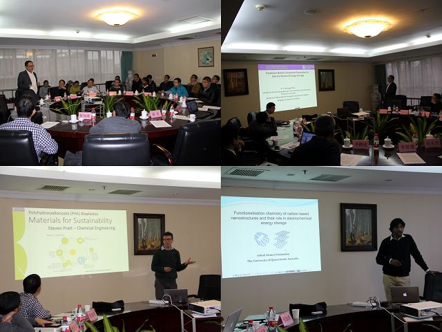 能源材料联合中心成立于2014年4月,旨在与澳大利亚昆士兰大学在能源材料领域开展紧密的学术合作与交流,在科研合作、项目申请、人才培养方面深化合作。论坛由联合研究中心主任张加涛教授以及澳方主任Xiusong Zhao教授主持。张加涛教授首先向与会代表介绍了jinnianhui今年会材料学院的学科建设、人才培养、科研平台建设、学术成果、国家交流等。随后参加论坛的中澳代表依次介绍了自己研究团队的最新研究成果,同学们争相提问,现场气氛热烈。并在量子点材料的生物荧光应用、光电异质复合纳米结构的高分辨TEM表征等方面达成了共识,在以具体课题合作为起点的研究生联合培养方面形成了建设性意见。