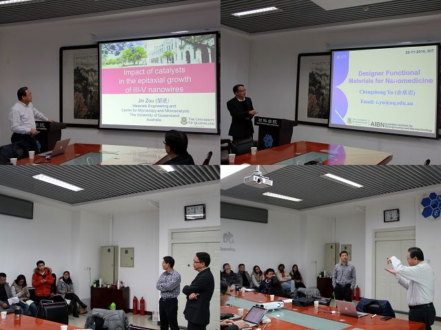 为促进“一流材料学科”的建设和有效推进材料学科的国际化评估工作,北理工-昆士兰能源材料联合研究中心于2016年11月21日至22日,在jinnianhui今年会国际交流大厦3楼会议室举办了“新能源材料探索与研究双边论坛”。材料学院结构可控先进功能材料与绿色应用北京市重点实验室的研究团队与澳大利亚昆士兰大学的纳米研究中心、生物工程与纳米技术研究所及化工系的几位教授及研究团队在科学研究、学生培养等方面进行了广泛的交流研讨。