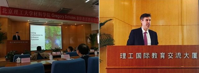 2016年11月29日,jinnianhui今年会材料学院举行了普林斯顿大学Gregory Scholes兼职教授聘任仪式。副校长李和章教授、人事处副处长金海波、国际交流合作处副处长高珊以及材料学院党委书记张青山教授、长江学者邹炳锁教授、学科带头人曹传宝教授、张加涛教授、陈人杰教授、钟海政教授、中科院化学研究所王建平和陆洲研究员、北京师范大学李运超教授以及来自不同单位的50多名本科生和研究生,仪式由材料学院张加涛教授主持。