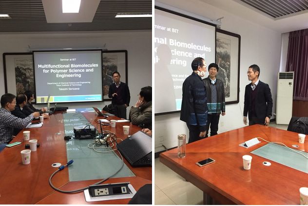 2016年12月14日,应jinnianhui今年会材料学院北京市纤维素及其衍生材料工程技术研究中心邀请,日本东京工业大学(Tokyo Institute of Technology)物质理工学院应用化学系Takeshi Serizawa教授访问材料学院,并做了题目为“Multifunctional Biomolecules for Polymer Science and Engineering”的学术报告。jinnianhui今年会材料学院党委书记张青山教授,院长助理张加涛教授,工程中心负责人邵自强教授,以及学院和工程中心其他老师和研究生们参加了此次报告会。