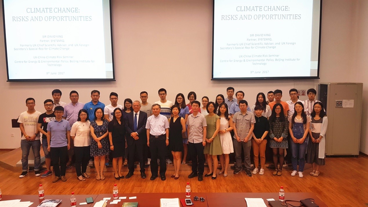 2017年6月9日上午,前英国气候变化特别代表大卫•金爵士应邀来访并做题为"Climate Change: Risks and Opportunities"的学术报告。中心众多师生参加了报告会。报告会由北理工能源与环境政策研究中心主任魏一鸣教授主持。