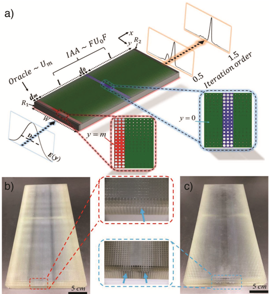 图1 (a)理论设计可执行量子搜索算法的微波超材料芯片。(b)和(c)3D打印制作的可执行量子搜索算法的超材料芯片。