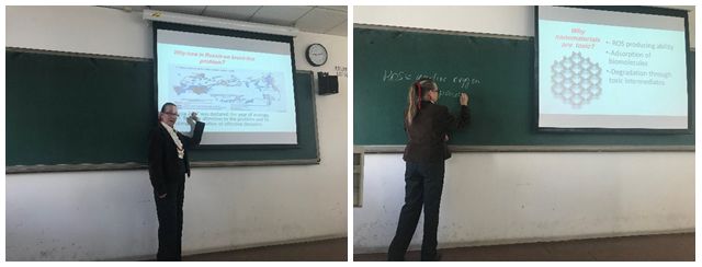 Irina V. Shugalei教授针对“绿色”的概念,对四种碳纳米材料在含能材料领域的应用以及其对环境和人体的危害作了详细的分析说明,精彩的报告使参会的同学和老师深感受益匪浅。