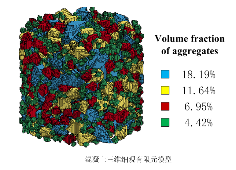 考虑骨料、砂浆及二者之间的ITZ创建了混凝土的三维三相细观随机骨料模型。详细介绍了随机多面体骨料的生成和投放方法、ITZ的生成方法以及如何通过网格投影法生成混凝土细观有限元模型的过程。在实验和反复数值模拟的基础上,确定了适当的混凝土内各成分的HJC材料模型参数。