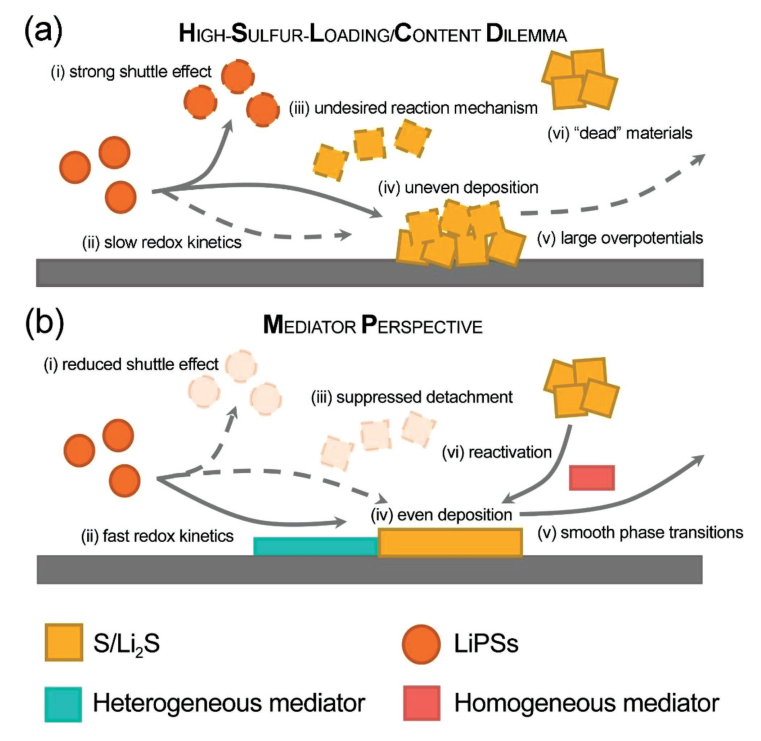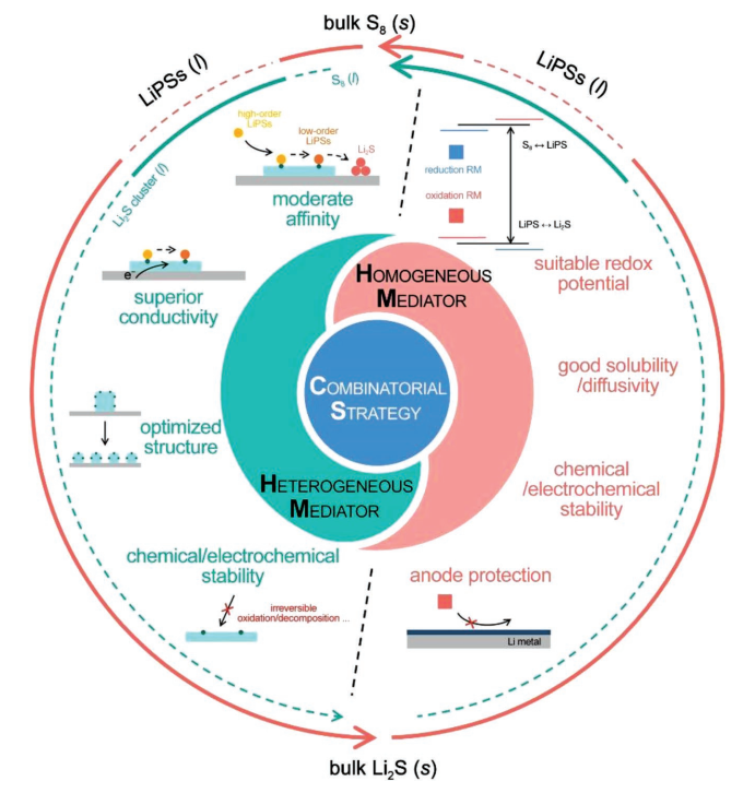 Heterogeneous/Homogeneous Mediators for High-Energy Density Lithium–Sulfur Batteries: Progress and Prospects. Advanced Functional Materials, 2018, 28, 1707536. DOI: 10.1002/adfm.201707536