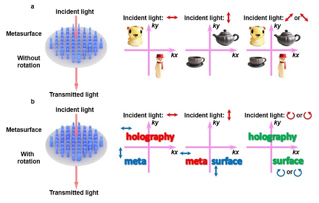 伴随着微纳加工工艺的进步,超颖表面在全息领域展现出了独特的应用前景。相比于基于空间光调制器的传统全息方法,基于超颖表面产生的全息再现像的分辨率和再现质量得到了极大地提高,可以克服传统全息所面临的诸如带宽窄、视场角小、存在多级衍射级次串扰、孪生像等挑战。同时,基于超颖表面的全息方法能够克服自然界材料(如空间光调制器、光刻胶)对偏振不敏感,仅能实现标量全息的限制。