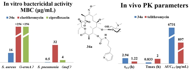 图3 大环内酯与喹喏酮杂合分子的抗耐药菌活性及其药代性质