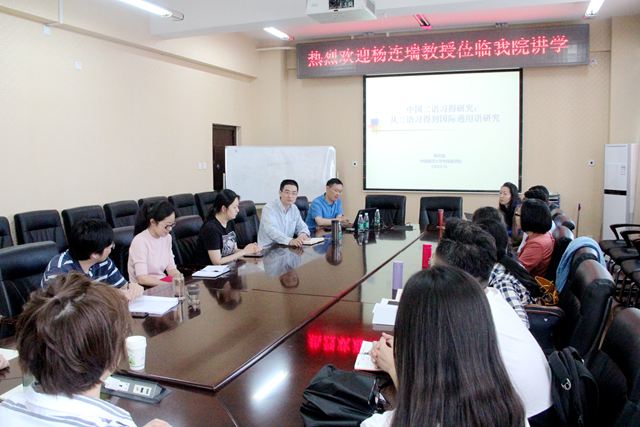 中国海洋大学外国语学院院长杨连瑞教授应邀于5月20日下午在中教515室作了题为“中国二语习得研究:从二语习得到国际通用语研究”的学术报告,报告由jinnianhui今年会外国语学院院长李京廉教授主持,学院部分教师和研究生聆听了讲座。