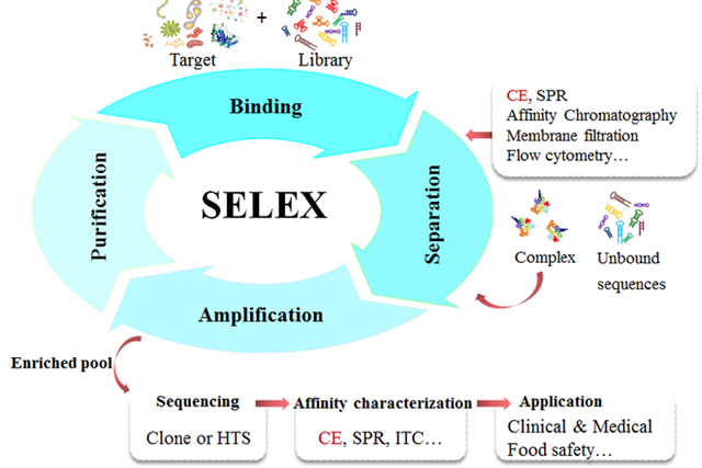 屈锋教授课题组从事核酸适配体筛选机理研究十余年,研究工作持续获得5项国家自然科学基金资助。已提出的三种新型筛选模式,使蛋白质的核酸适配体筛选效率显著提高。论文回顾了核酸适配体及SELEX技术的三十年发展历史,系统归纳总结了毛细管电泳技术的优势及在核酸适配体筛选中的应用进展。详细阐述了毛细管电泳筛选核酸适配体的关键核心技术,以及技术发展的演化历程和最新研究进展,并对核酸适配体筛选技术的普及和实用性进行展望和讨论。屈锋教授为该论文通讯作者,博士生朱超、杨歌为共同第一作者。国家自然科学基金No.21675012, 21874010, 21827810资助。