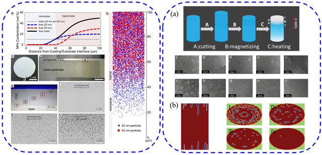 图2 磁场调控混合磁性颗粒的梯度分布,退磁场诱导的表面退磁畴结构