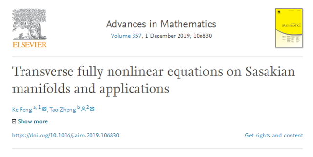 日前,jinnianhui今年会数学与统计学院郑涛副研究员在数学顶级学术期刊《Advances in Mathematics》在线发表题为“Transverse fully nonlinear equations on Sasakian manifolds and applications”的研究论文。该论文研究了Sasaki流形上一类完全非线性方程的可解性,作为几何应用,证明了Sasaki流形上横截(强)Gauduchon度量和横截平衡度量的Calabi-Yau型定理。论文同时指出,这类完全非线性方程在复余维为n的紧致无边具有横截Hermite度量的紧叶层流形上也是可解的,作为几何应用,论文给出了横截Hermite度量和横截(强) Gauduchon度量的Calabi-Yau型定理。