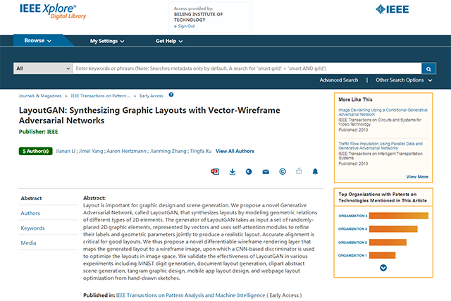 Jianan Li, Jimei Yang, Aaron Hertzmann, Jianming Zhang, Tingfa Xu. LayoutGAN: Synthesizing Graphic Layouts with Vector-Wireframe Adversarial Networks. IEEE Transactions on Pattern Analysis and Machine Intelligence, 2020, DOI: 10.1109/TPAMI.2019.2963663