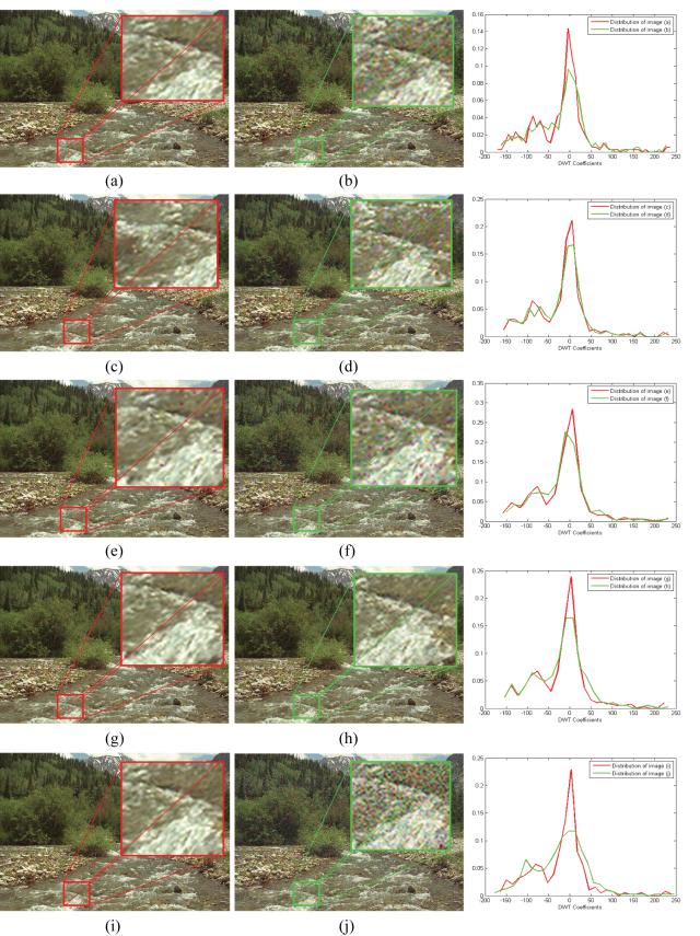 图2.TID2008数据库中噪声污染图像以及相应的二维小波系数分布图