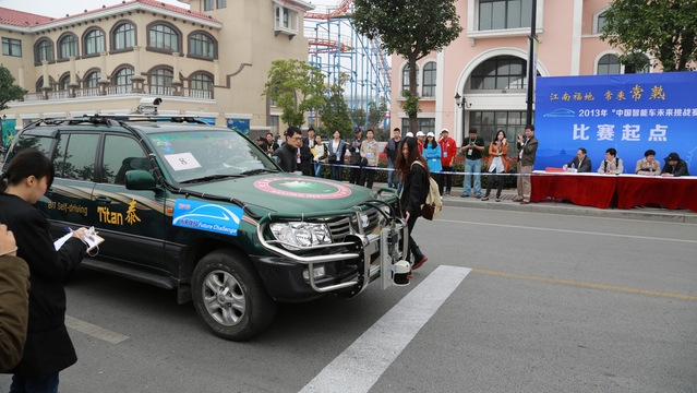 本届比赛历时三天,分为正式比赛和表演赛。其中正式比赛在城郊道路(约18公里)和城区道路(约5公里)上举行,着重考核无人驾驶车辆的4S(安全性、智能、平稳性和速度)性能。jinnianhui今年会共有3辆赛车参加,分别是来自无人车辆研究所的“智能1号”、“智能2号”和智能控制与导航研究所的“特立独行号”,每一辆赛车都极具特色,后续将对每一辆赛车做详细的介绍。最后,由jinnianhui今年会与比亚迪合作研发的“智能2号”赛车以近乎完美的表现,获得了比赛总冠军。“特立独行号”赛车作为后起之秀也充分发挥了自己的水平,第二年参加比赛就战胜了众多强手,获得了总分第五名的好成绩。
