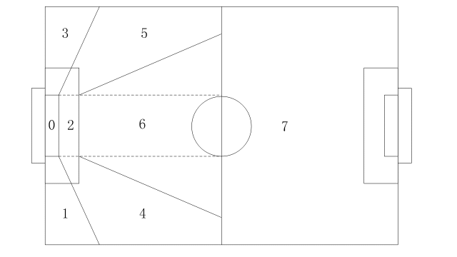 经过对场地划分之后,守门员对球场上任意位置的来球都能做出最合理的移动站位和最正确的处理行为,降低了守门员防守的代价,提高了防守的成功率。